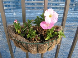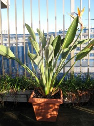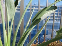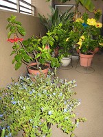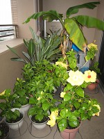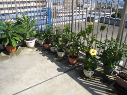 過去10年で最大の風が吹くとの予報で、台風接近の前々日に、ルーフバルコニーの鉢花をベランダに移動させました。 |
