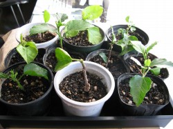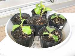 今年もハイビスカスの挿し穂をやっています。現在10ポットを水だけで育てています。さて、来年の春まで持ってくれるかな・・・。 |