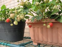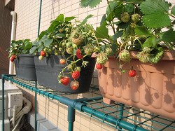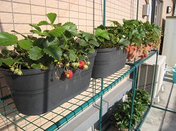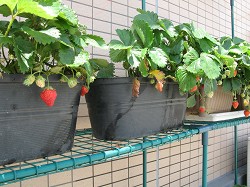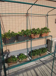 全部はベランダに移動させられないものですから、いちごは壁際に移動させてました。 |
