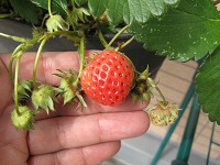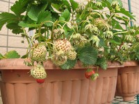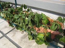 いちごたちもそろそろ終わり。いつもならつるを根付かせて株を増やすところですが、今年はもう増やすのを止めることにしました。 |