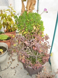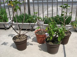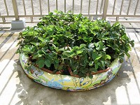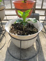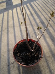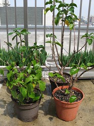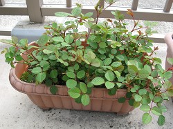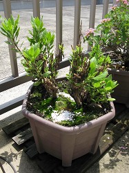 ひと足先に植え替えた「ゴクラクチョウカ」。今年もまた花を付けてくれるかな・・・。 |
