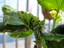 これはハイビスカスに付いた「アブラムシ」。今年はなぜかハワイのハイビスカスにだけ付いています。 |