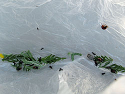 そうです、公園で捕獲してきたてんとうむしの幼虫が、見事にアブラムシを食べ尽くしてくれました。そして、成虫になった「てんとうむし」は、次々に旅立っていきましたよ。 |