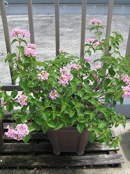 ランタナは今が満開。花が終わって実になると鳥が来るので、終わった花をすぐに摘んでしまわなくてはいけません。 |