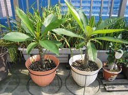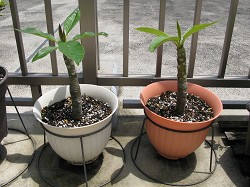 プルメリアの生育は早いです。上の写真を見比べてみてください。 |