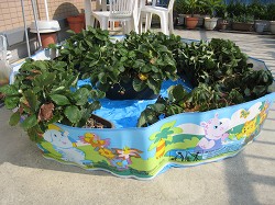 そこで、旅行用に購入したミニプールの登場です♪ 晴天が続くときはこれからずっと、このプールに入れておくことにします。 |