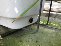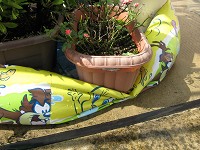 そして、このようにプールの空気を少し抜いて、万が一留守中に大雨が降っても溢れ出るように調整しました。 |
