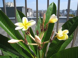 つぼみは次々に開花し始めました。これからしばらくの間は、わが家のベランダがハワイの香りで包まれそうです。 |