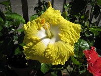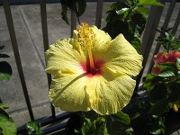 ご存知ハワイのハイビスカス。非常に丈夫で、花つきも最高です。日本で売られているハワイアンイエローよりも、花が大きいです。 |