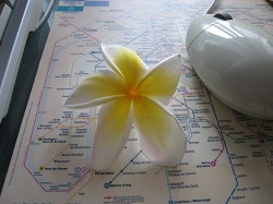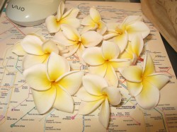 そしてこのように、花がポロポロと落ちてしまいました。もう少しあれば、レイができてしまいそうです。 |