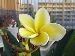 10月下旬になって、ようやくもう1鉢の「黄色のプルメリア」も開花しました。 |