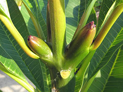 9月下旬になって、ついにプルメリアのつぼみが膨らみました。 |