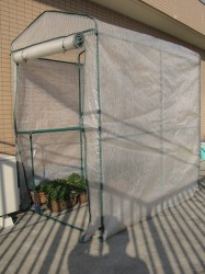 とりあえず、ビニルハウス内に入れました。ただ、この時期気をつけないと、ハウス内の温度が高温になる可能性があるんです。 |