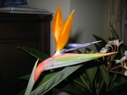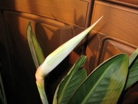 ついに4羽目のゴクラクチョウカ開花。冬の室内が非常に艶やかな雰囲気です。 |