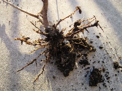 あまりに不自然だったので掘り起こしてみると、根っこがほとんどありませんでした。 |