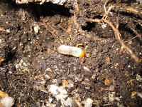 「これは!」と思って掘り始めると、やはり出てきました。通称「根切虫」。 |