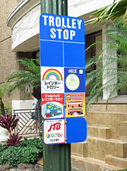 JALパックのレインボートロリーも、通常のトロリーと同じトロリーストップに停車します。 |