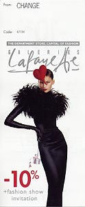 両替店に置いてある「ギャラリー・ラファイエト・デパート」の10%割引券。おみやげの購入にでも使えるのでぜひ入手してください。 |