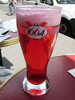 マダムは 「モナコ」という、ビールににレモネード、そしてざくろシロップを入れた飲み物。 |