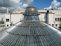これが吹き抜け部分のガラス天井。上から見ると、おかしなカタチをしています。 |