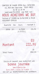 わが家の経験ですと、パリ市内の中でこのオペラ地区の両替店がいちばんレートがいいように思えます。 |