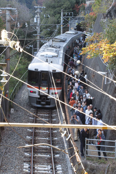 何せ通路も階段も狭く大渋滞発生。おまけに架線があってきれいな写真も撮れませんでした。 |