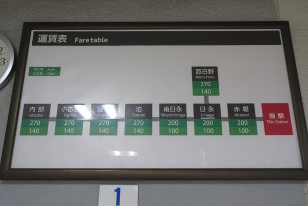 運賃は初乗りが200円でそれ以上が270円。 西日野までは片道270円。 |